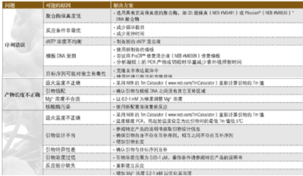 下面的指南可用于解決 PCR 反應(yīng)中出現(xiàn)的問(wèn)題。關(guān)于優(yōu)化反應(yīng)的更多建議可訪問(wèn) NEB 網(wǎng)站的技術(shù)參考部分。