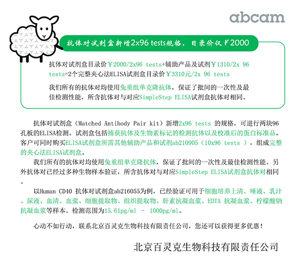 abcam抗體對試劑盒新增2x96 tests規(guī)格,目錄價僅¥2000